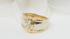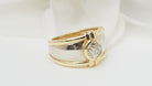 Bague jonc ; Or jaune et blanc 18kt/750 millièmes ; Ornée en serti clos d'un diamant taille ancienne d'environ 0,40ct ; Poids : 7,80 gr ; Taille : 47 ; Largeur : 11,15mm ;