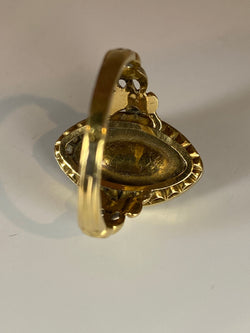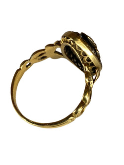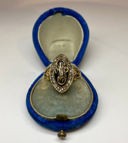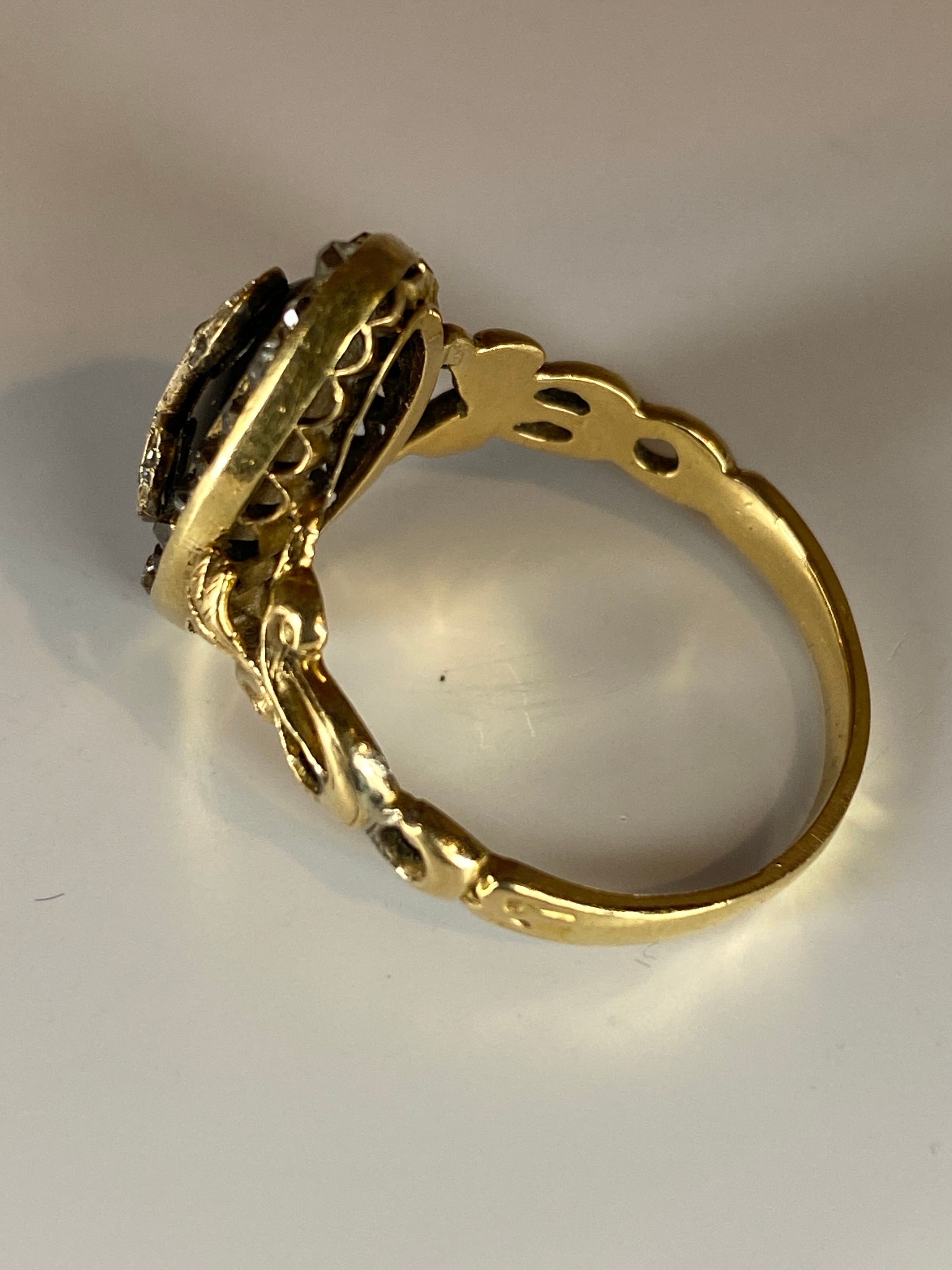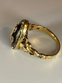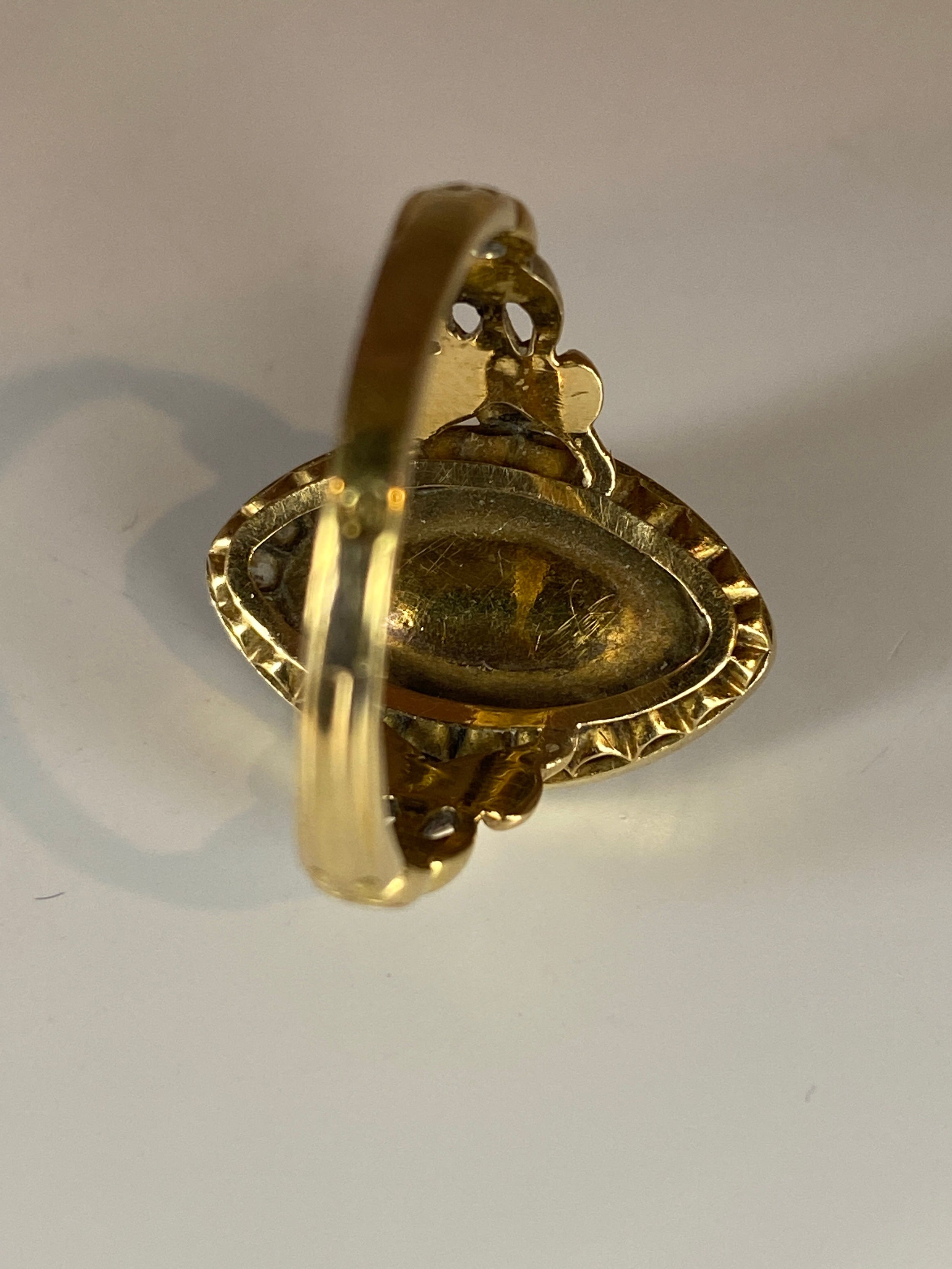 Bague marquise en 18 carats émail bleu et diamants vers 1850