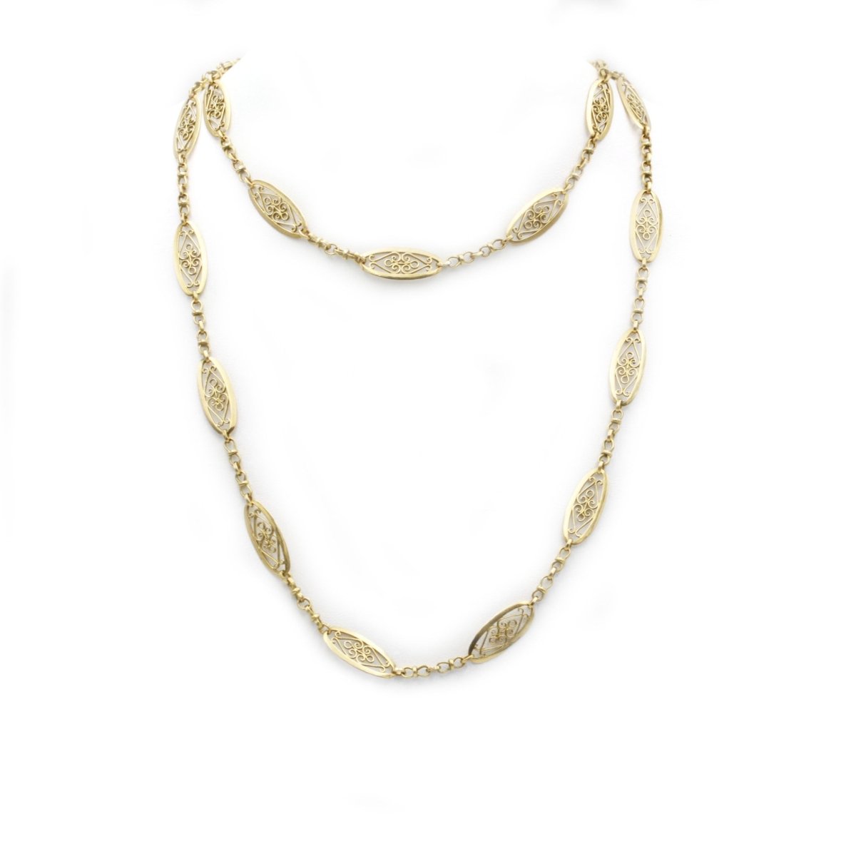 Sautoir en or jaune 750‰. Longueur : 72,5 cm Poids : 21,17 grs