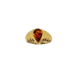 Bague à motif godronné en or jaune 18 carats sertie en son centre d’une citrine taillée en poire.