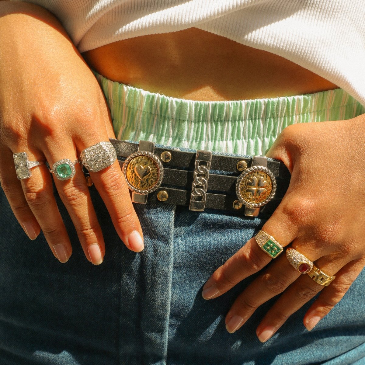 Bague rectangulaire en or blanc 18 carats, ornée au centre de deux diamants de 1,50 carats chacun et pavée de diamants. Circa 1950.