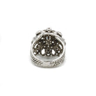 Bague en or blanc 750‰, sertie d'un diamant taille ancienne de 0,70 carat environ, J SI, entouré de 14 diamants taille ancienne (0,45 carat environ), I SI. Tour de doigt : 47 Mise à taille possible.
