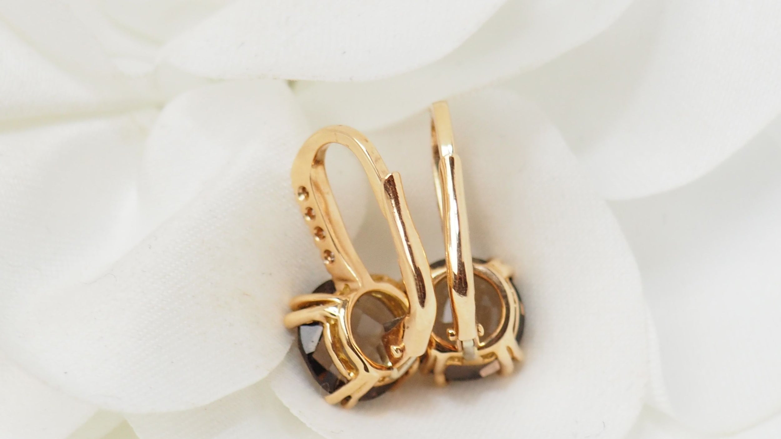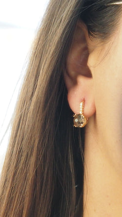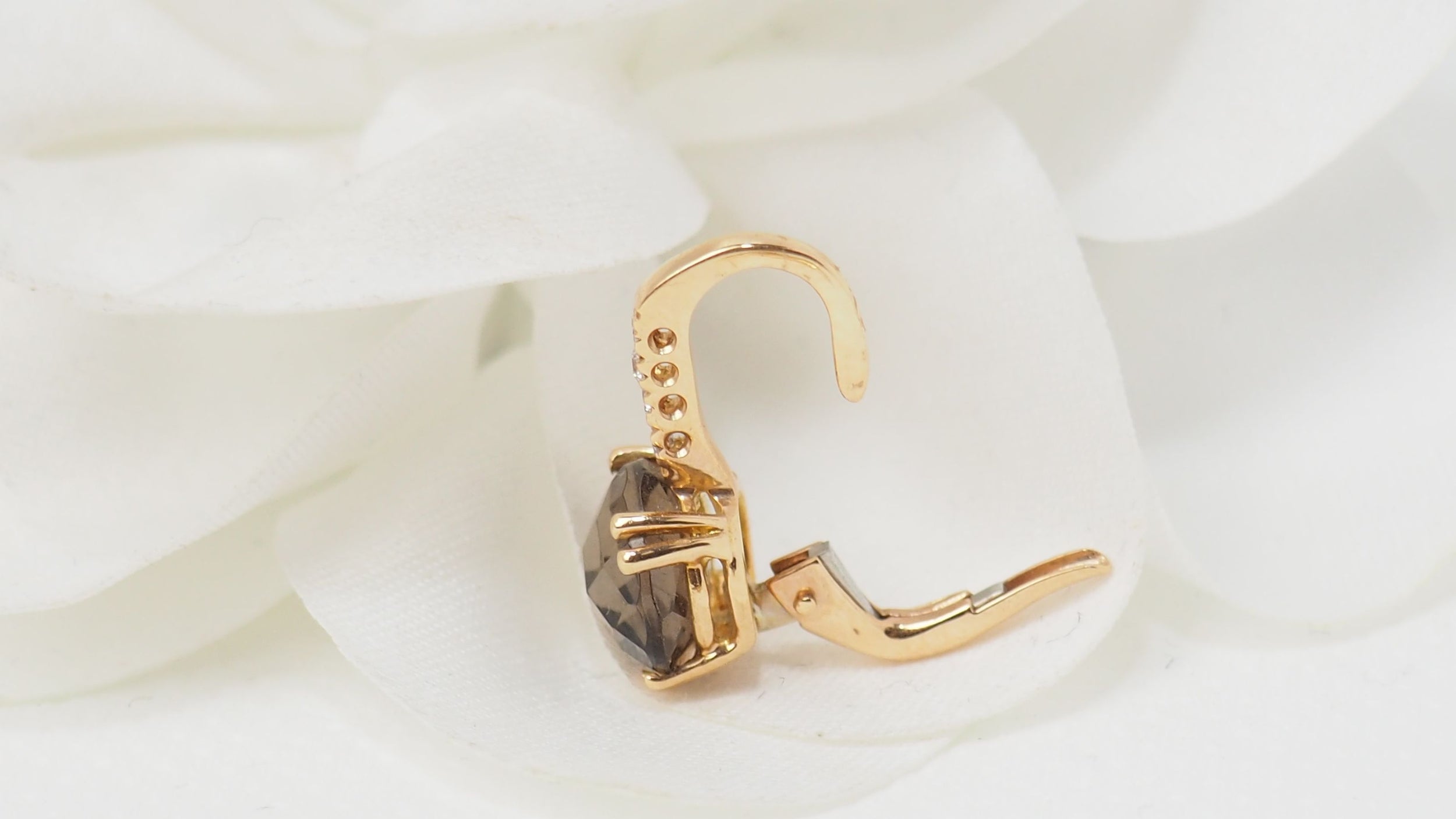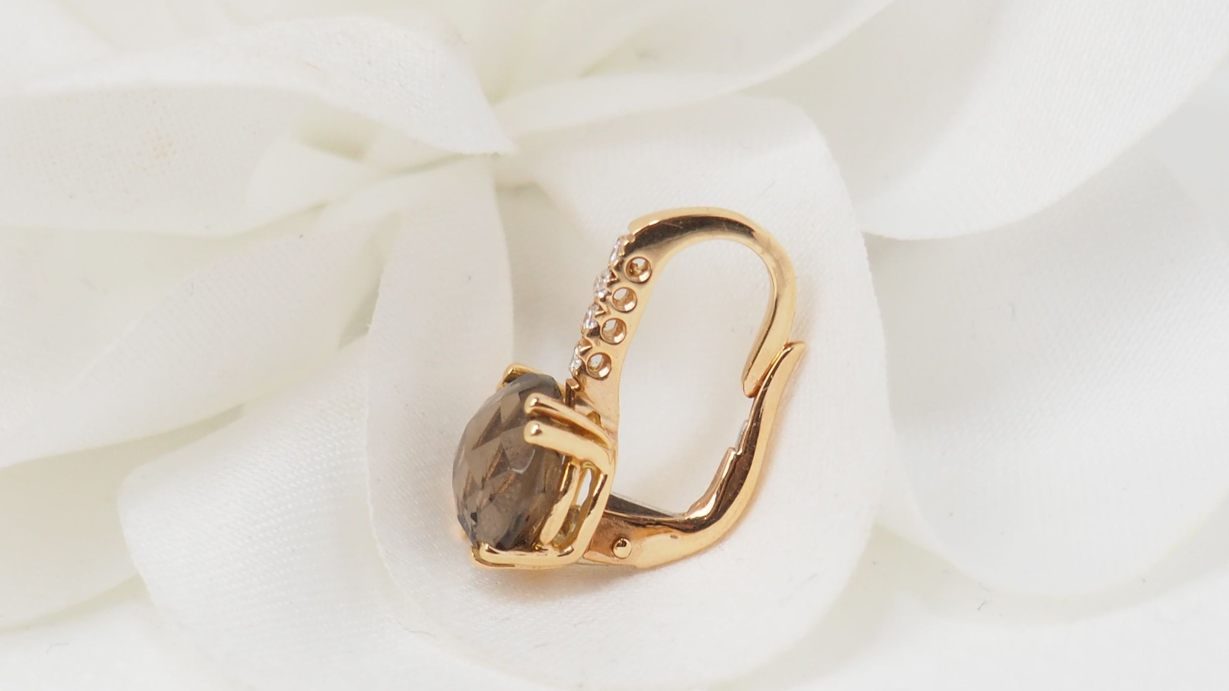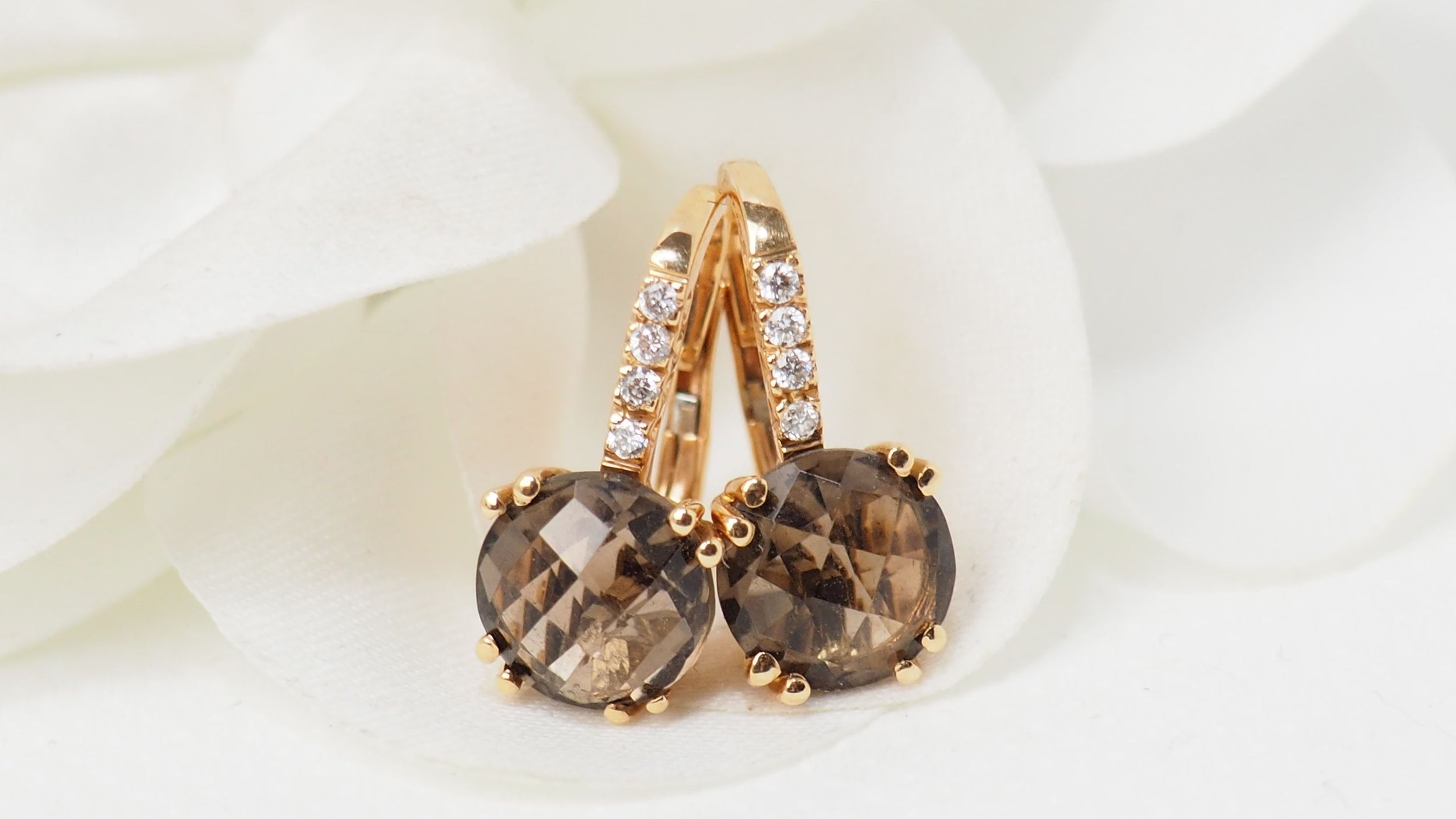 Boucles d'oreilles en or rose, quartz fumé et diamants