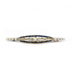 Broche - Or. Platine. Saphirs. Perles Et Diamants