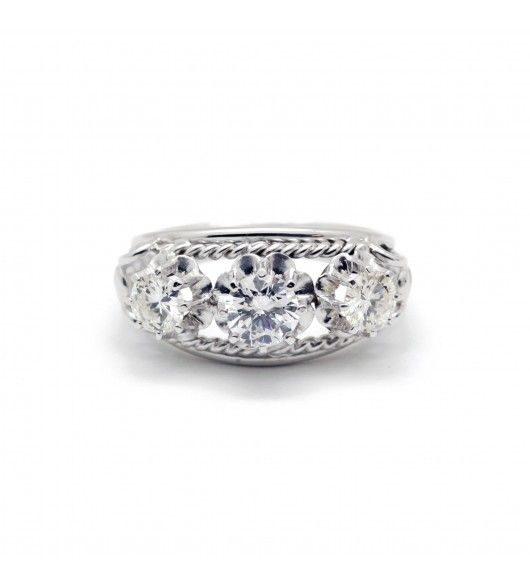 Bague en or blanc 750. sertie d'un diamant de 0.60 carat D VS2 (certifié HRD) et de 2 diamants respectivement de 0.34 carat et de 0.31 carat.Tour de doigt : 55Mise à taille possible.