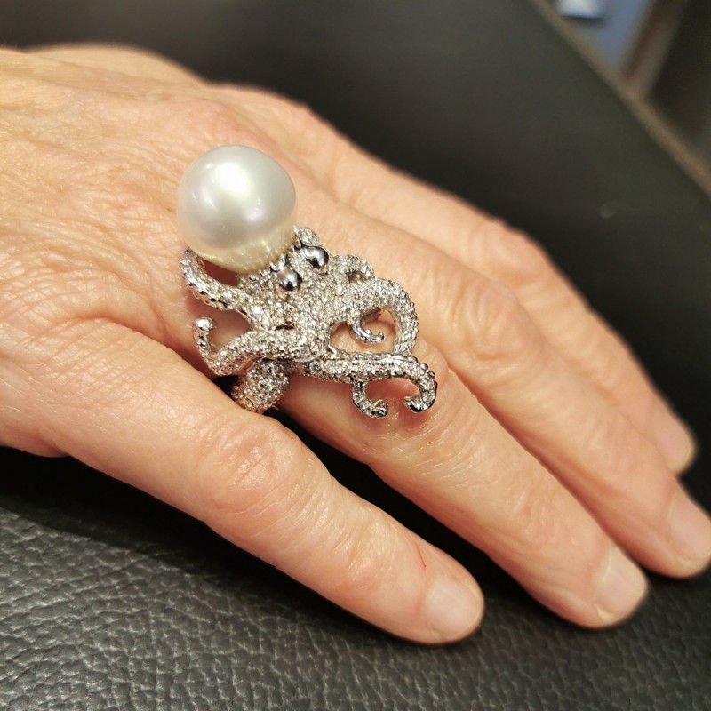 Bague or blanc perle diamants