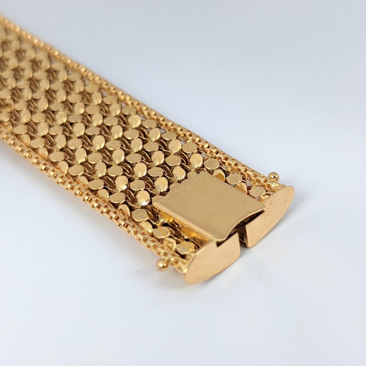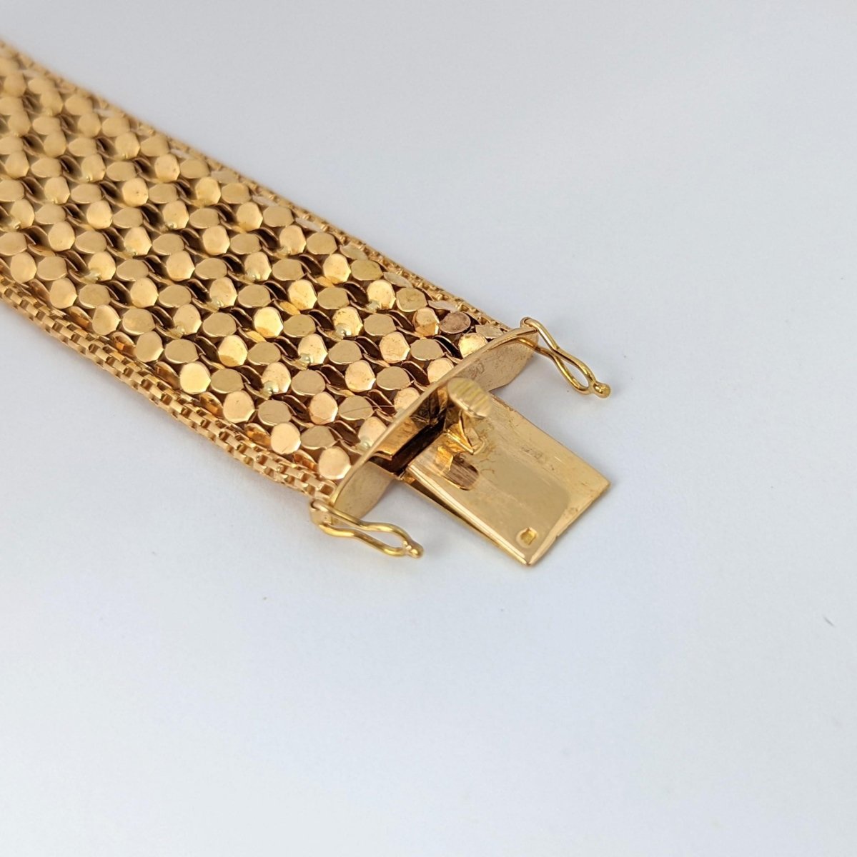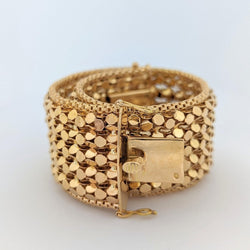 Bracelet manchette en or jaune 18 carats - 750 millièmes Poids brut 38,86 gr Longueur du bracelet 18 cm Largeur du bracelet 2,5 cm
