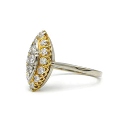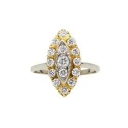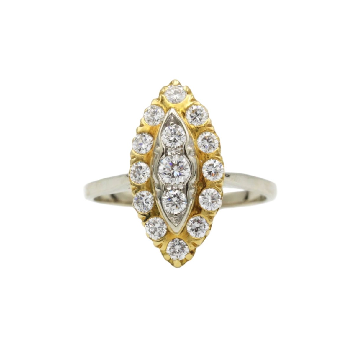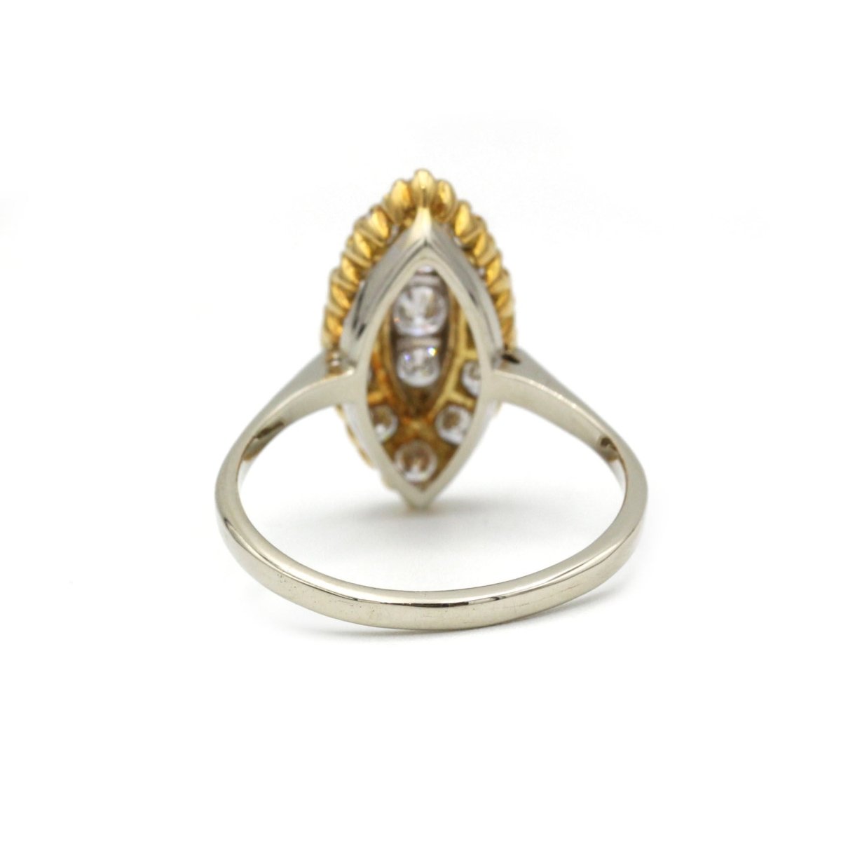 Bague Marquise en or jaune et or blanc 18 carats, sertie de 15 diamants. Cette bague élégante et intemporelle apportera une touche de raffinement à votre tenue.