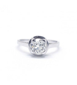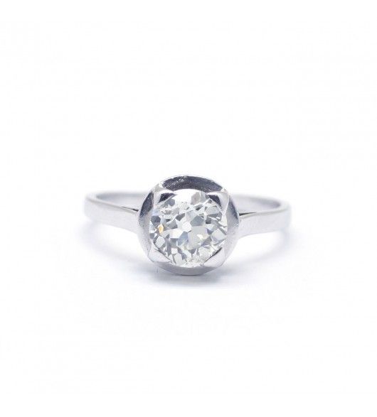 Solitaire en platine 950. serti d'un diamant "taille ancienne" d'environ 1.10 carats (J/SI).Tour de doigt : 51Mise à taille possible.