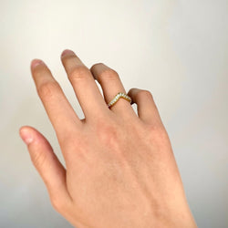 Alliance incurvée, finement ciselée, signée A A Mouchet, en or jaune 750‰, sertie de 33 diamants taille brillant, pour un total de 0,70 carat environ. Tour de doigt : 53 Mise à taille impossible. Poids : 3,55 grs