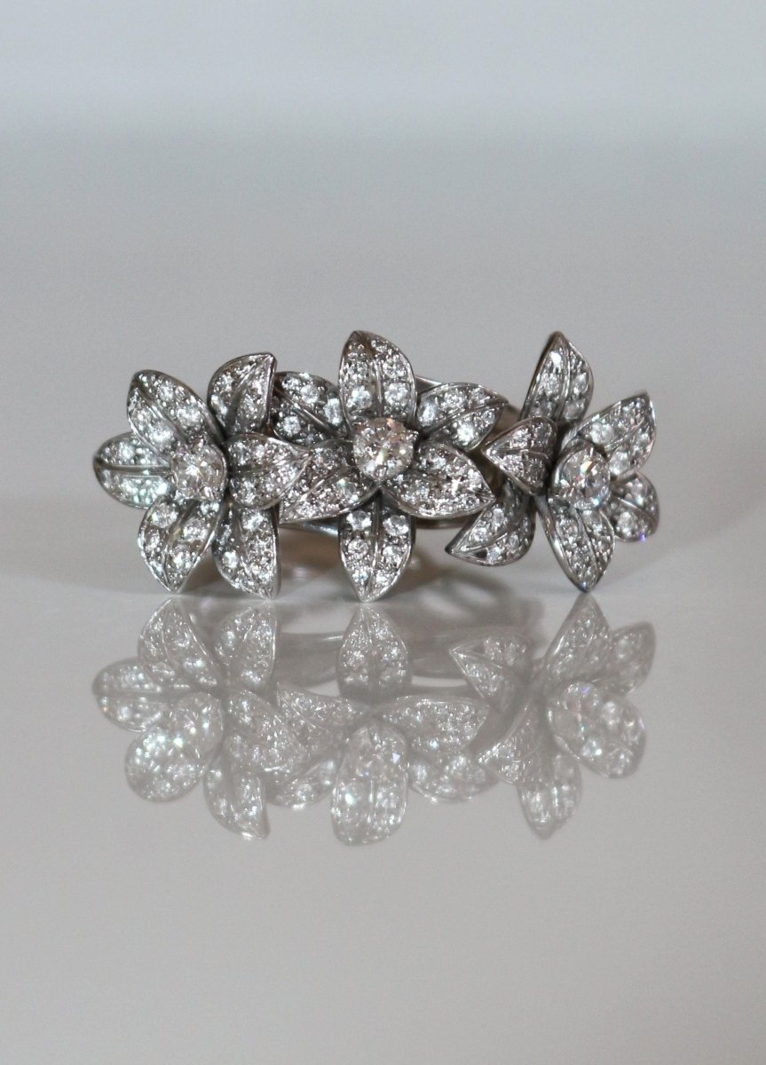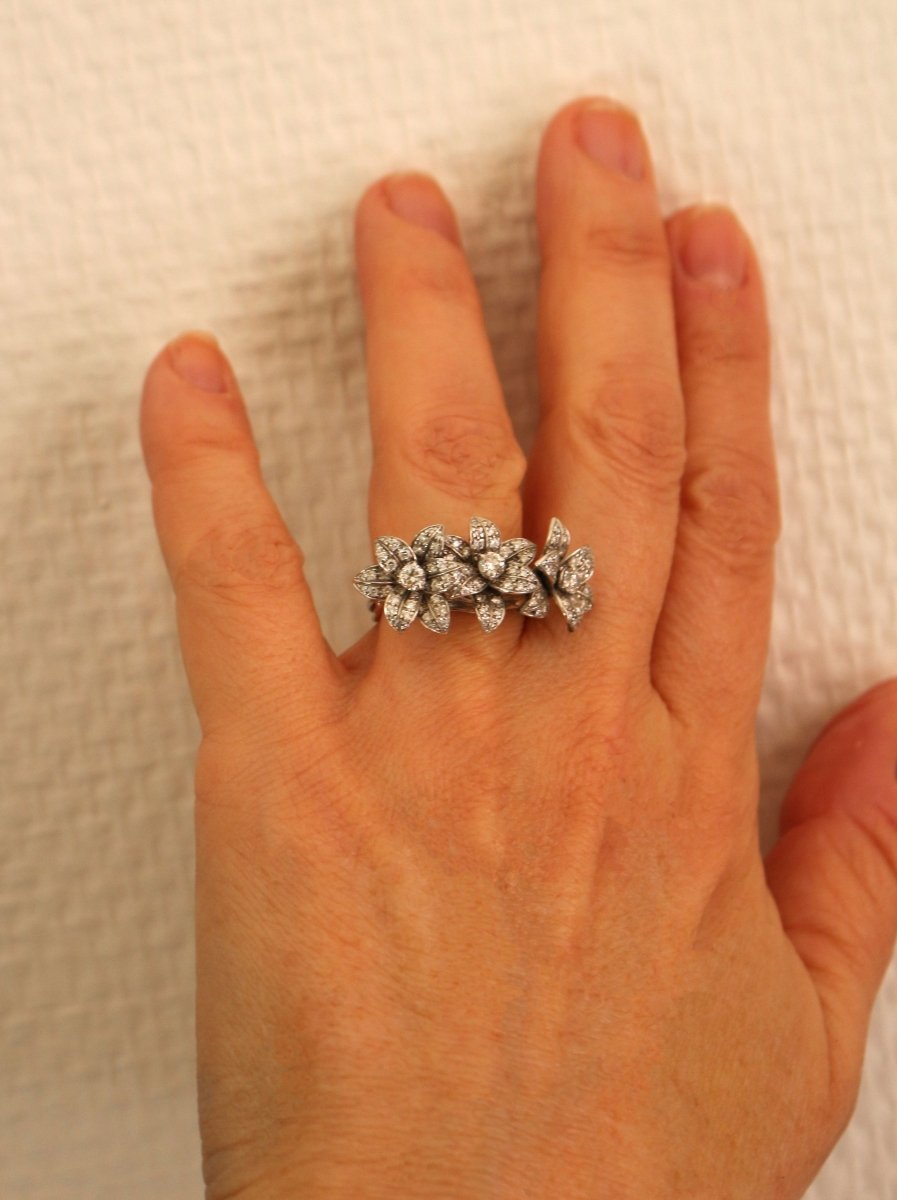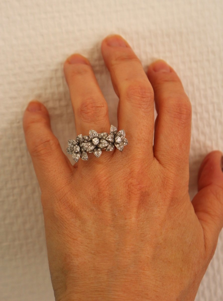 Bague en or blanc 18 carats, sertie de 126 diamants.