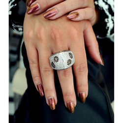 Poids: 6 Poids: 23 Matière: Or gris Matière: Diamant brun Matière: Diamant blanc Poids pierre: 0 Nombre de pierre: plusieurs (nombre inconnu)
