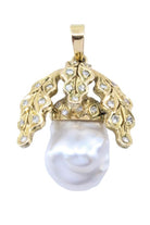 Type bijou : Pendentif Métal : Or jaune 18 carats (750/1000) Genre : Ancien Poids : 7.6 g Pierres : Perle - Diamants Poids diamants : 27 x 0.01 carat Dimension : 27 mm x 22 mm Poinçon : Hibou