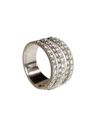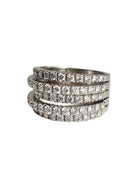 Bague en or blanc 18K de marque « DE BEERS » composée de 5 anneaux sertis de 69 diamants pour un total d'environ 1,75 ct. Bague signée et numérotée. Prix neuf sur le site : 17,600 € Taille de doigt : 54 ( FR ) Poids brut : 10,5 g Poinçon : DB, 750