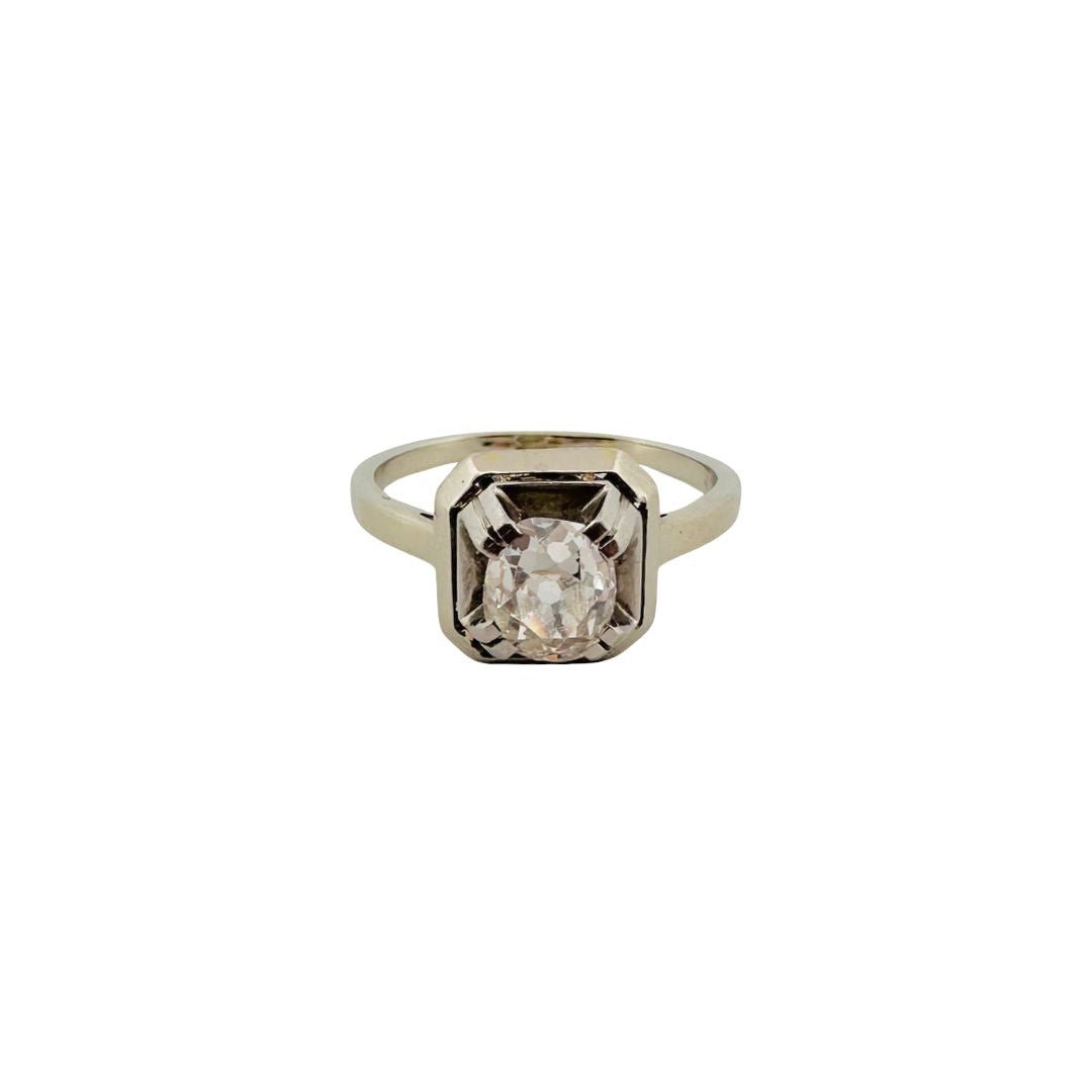 Bague Solitaire Art déco en platine sertie griffe en son centre d’un diamant taille ancienne.