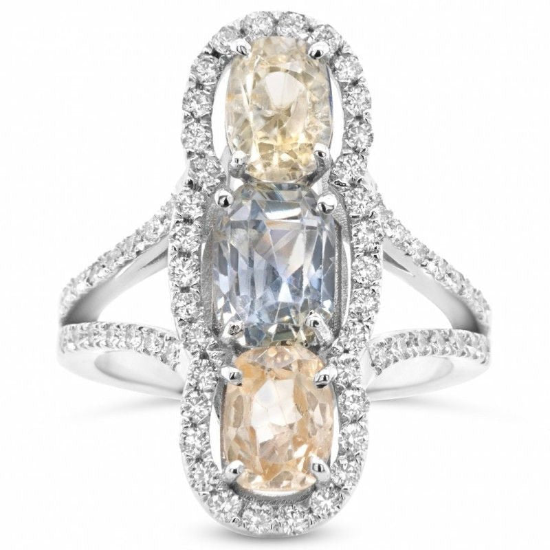 Matière: Diamant Matière: Saphir Matière: Or gris Poids pierre: 0.75 Poids pierre: 3.31 Nombre de pierre: 1 Nombre de pierre: 3 Qualité pierre: VS Couleur pierre: F