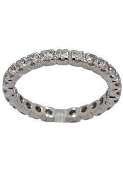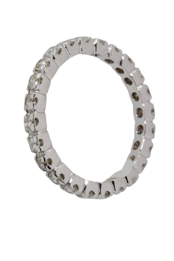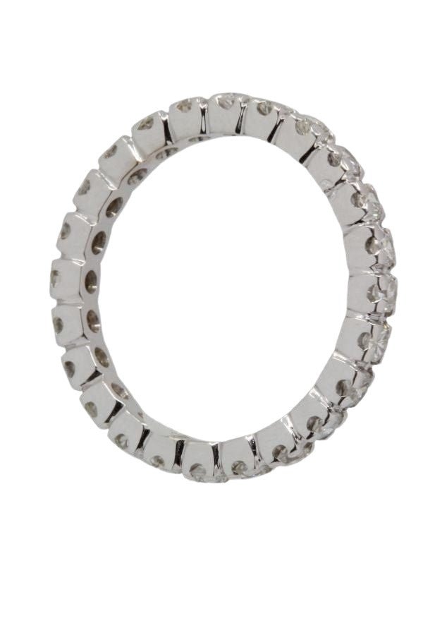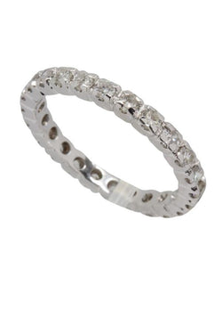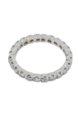En parfait état, cette alliance est sertie sur tout son tour de diamants taille moderne. Type bijou : Bague Métal : Or blanc 18 carats (750/1000) Poids : 3.3 g Pierre : Diamant Poids diamant : 23 x 0.03 carat soit 0.72 carat au total Taille : 55 - Pas de remise à la taille possible Poinçon : Hibou Tous nos bijoux sont rigoureusement contrôlés en atelier avant leur mise en vente.
