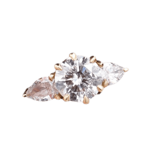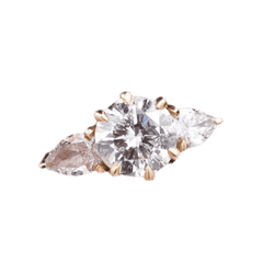 Bague en or jaune 18 carats, au centre d'un important diamant de taille brillant, épaulé de deux diamants taillés en poire.