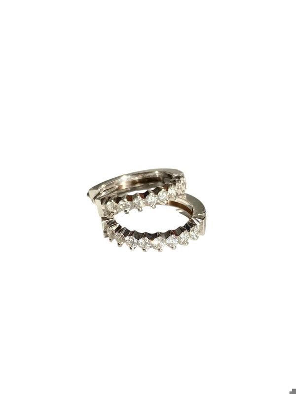 Boucles d’oreilles créoles en or blanc 18 carats, chacune sertie de 8 diamants.