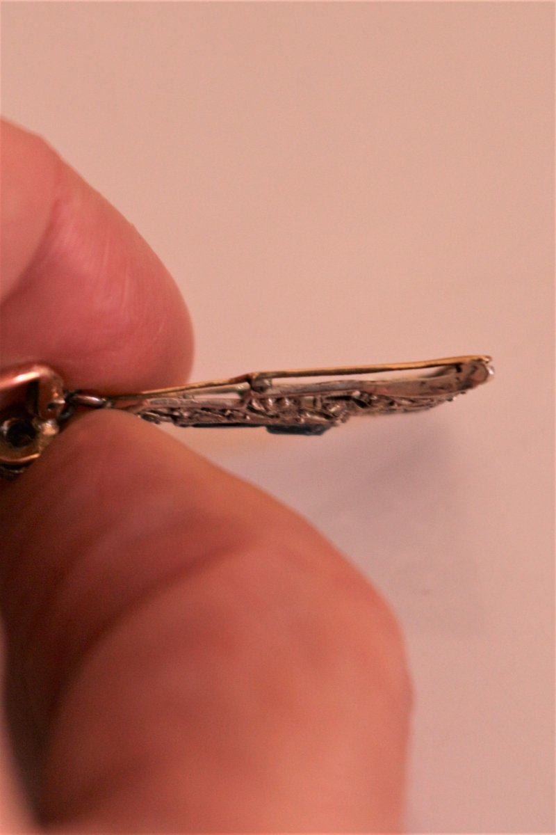 Paire de pendants d'oreilles d'époque Art Déco en forme de lambrequins ajourés, rehaussés de petites pierres blanches et bleues calibrées à l'imitation du saphir. Monture or jaune 18 carats et platine. Galerie ajourée visible de profil.Etat : bon état, un saphir calibré recollé (travail ancien) et petites déformations d'un fermoir, mais tiennent bien.Dimensions : 3.2 cm de long et 3.8 cm en tout, 1.5 cm au plus largePoids brut : 4,86 grPoinçons : hibou or 18 carats et tête de mascaron pour platine 850/1000e min.ref.518