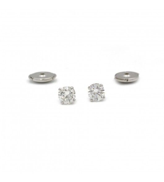 Paire de puces d'oreilles en or blanc 750 sertie de deux diamants de 0.38 carat environ de qualité G-VS.