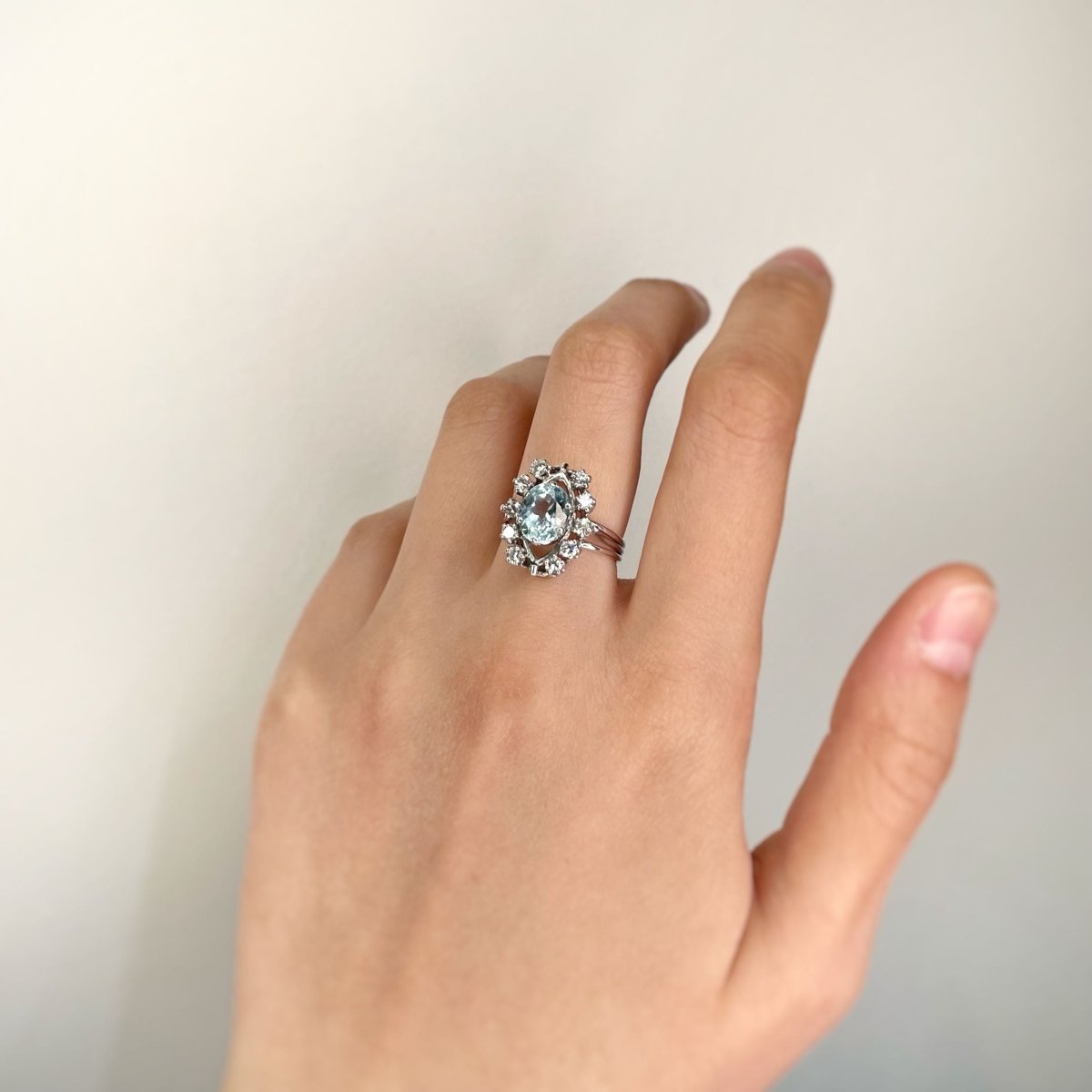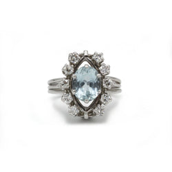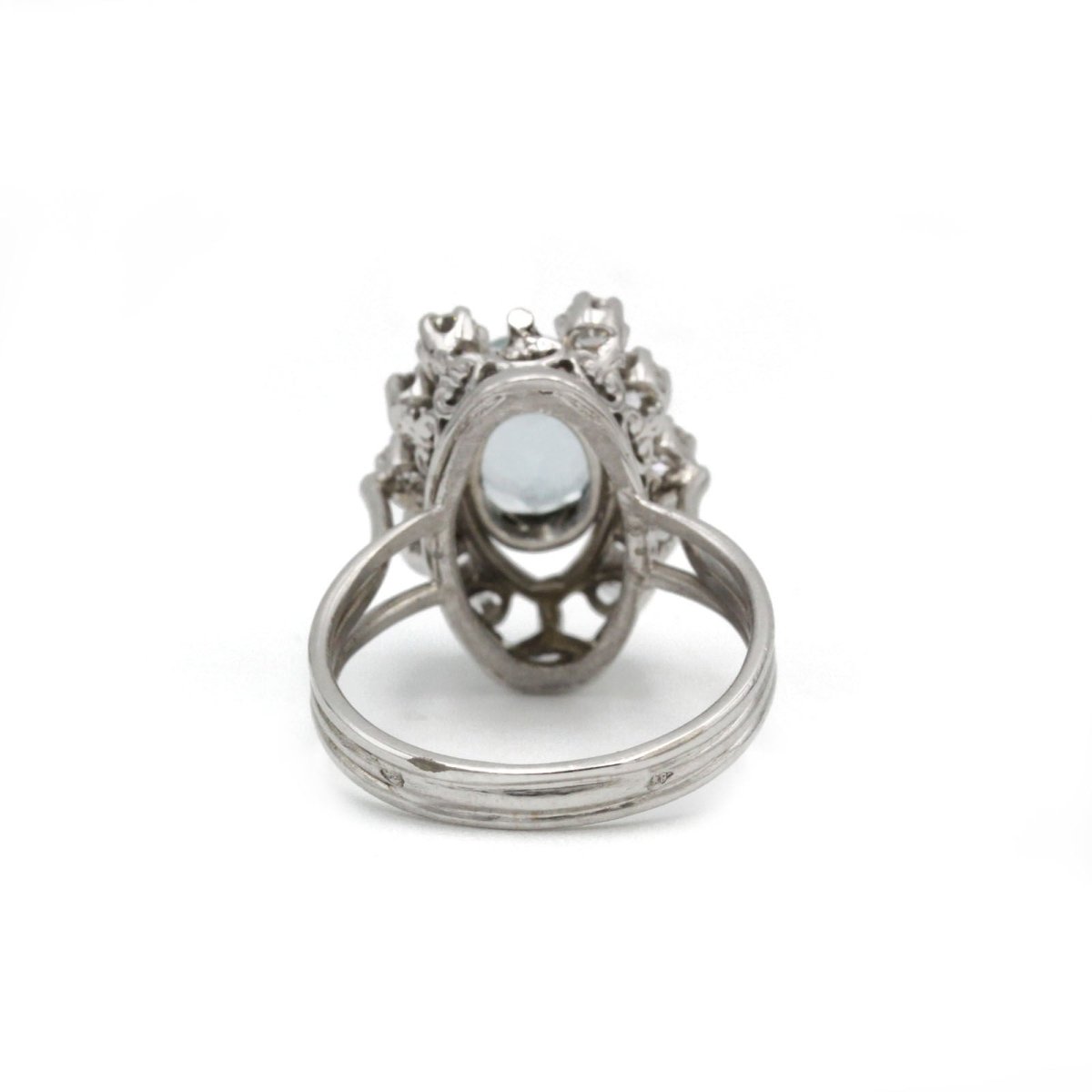 Bague en or blanc 750‰, sertie d'une aigue-marine d'environ 1,65 carats et de 10 diamants (0,40 carat environ). Tour de doigt : 53 Mise à taille possible. Poids : 5,28 grs