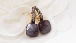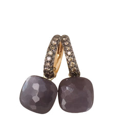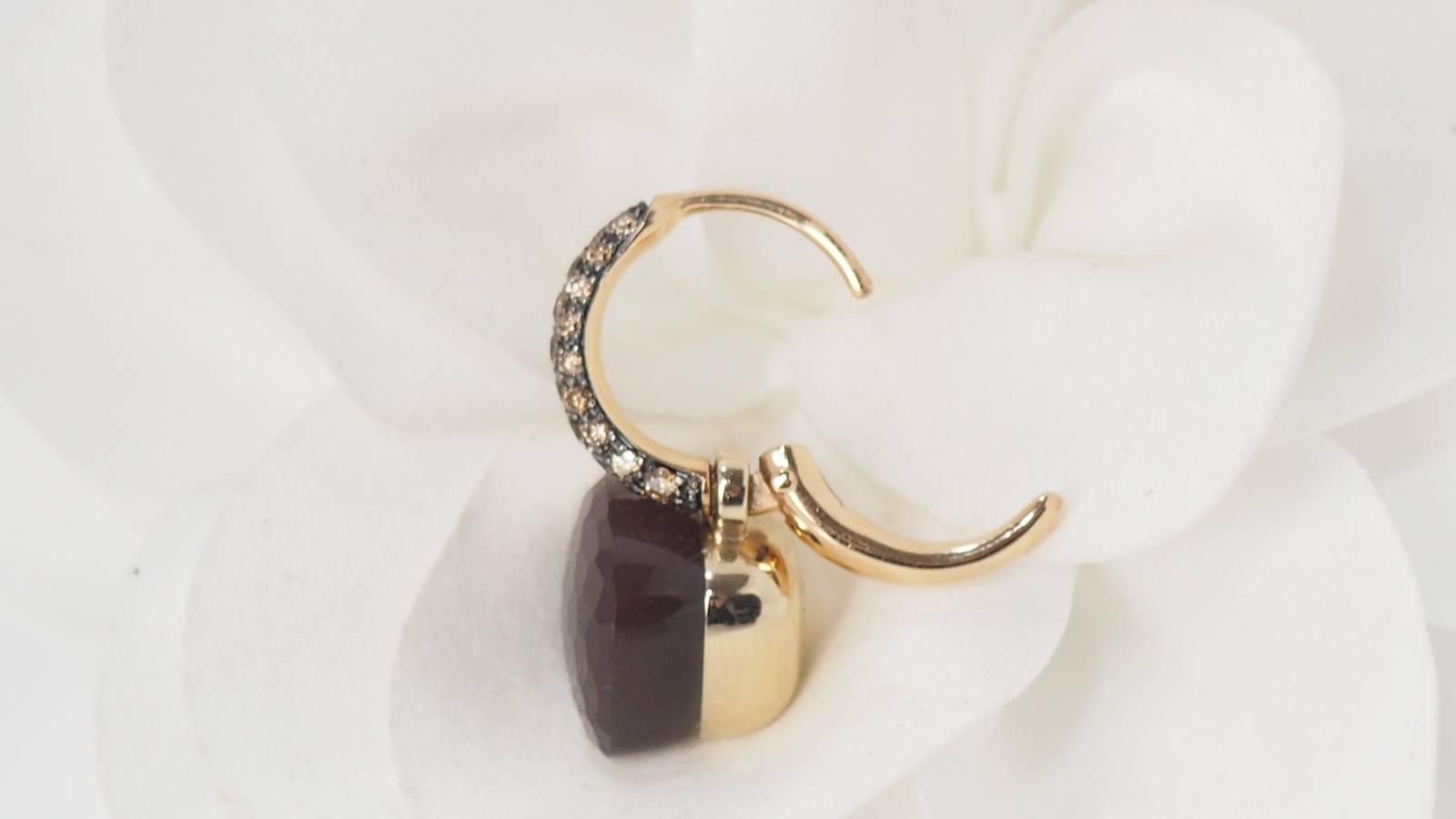 Boucles d'oreilles Pomellato en or rose, pierre de Lune et diamants bruns
