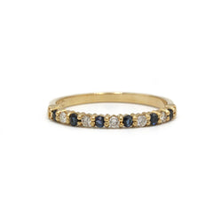 Demi-alliance en or jaune 750‰, sertie d'une alternance de 5 petits diamants et 6 saphirs taille ronde. Tour de doigt : 53 Mise à taille impossible. Poids : 1,71 grs