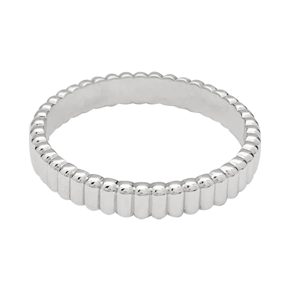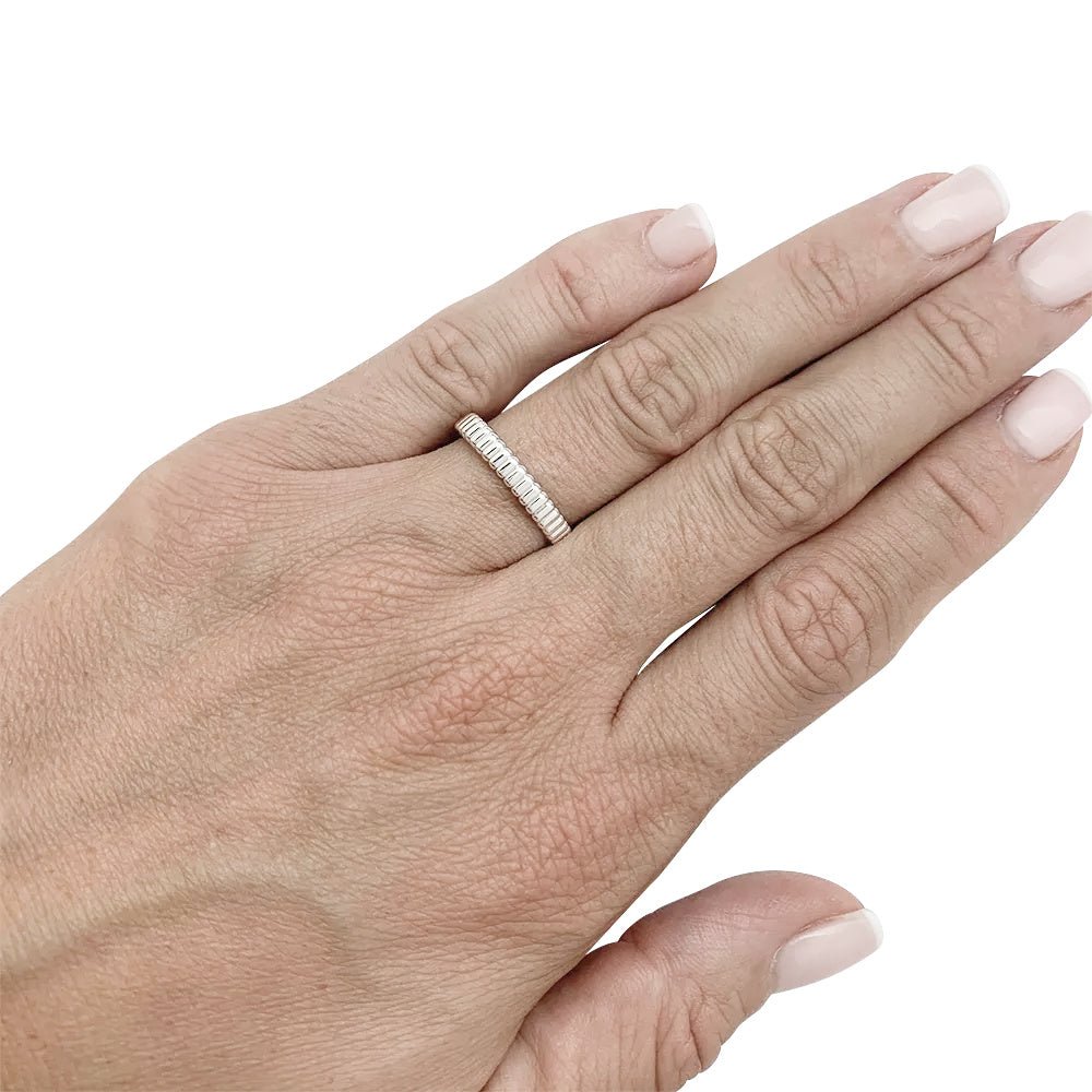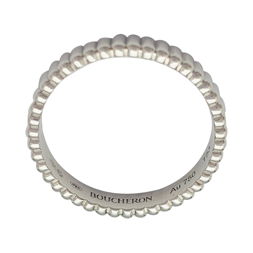 Une alliance signée de la Maison Boucheron “ Grosgrain”, en or blanc 750/000. Largeur : 3 mm Poids : 3,3 grammes Prix neuf : 2080 Tour de doigt : 53