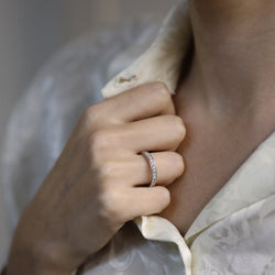 Alliance sertie griffes en or gris 18 carats avec 34 diamants brillants.