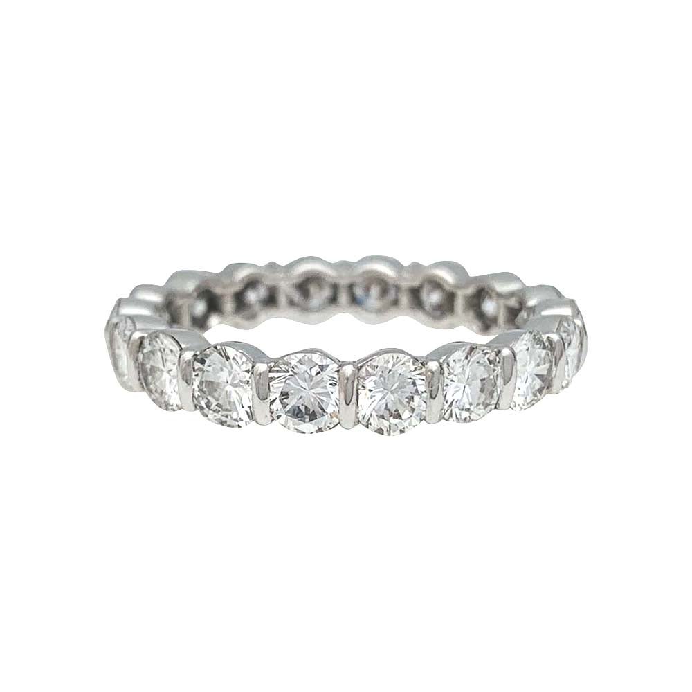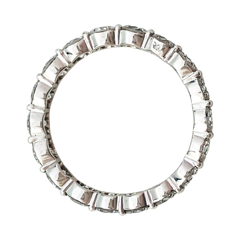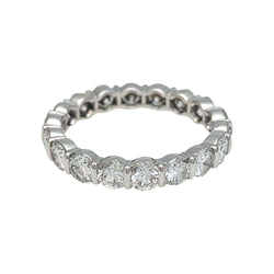 Une alliance tour complet en or blanc 750/000 et platine 950/000 ornée de 18 diamants taille brillant en serti Chirol. Le serti bride ou serti Chirol a été inventé par Francis Chirol qui lui a donné son nom et à qui nous rendons hommage. Poids : 2.7 grammes Poids du diamant : 2,15 carat environ Tour de doigt : 51