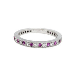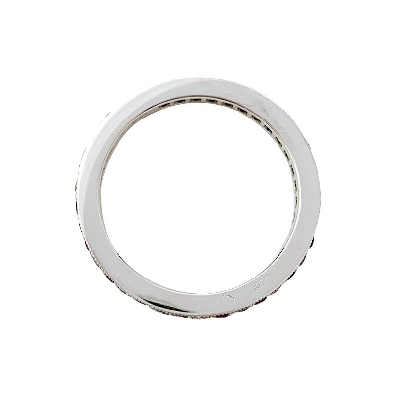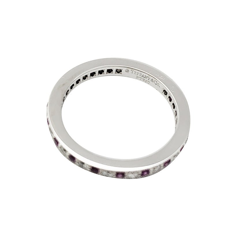Bague Alliance TIFFANY & CO. "Tiffany Legacy" en platine, entièrement ornée de diamants taille brillant et de saphirs roses en serti à grains. Prix neuf : 4020€.