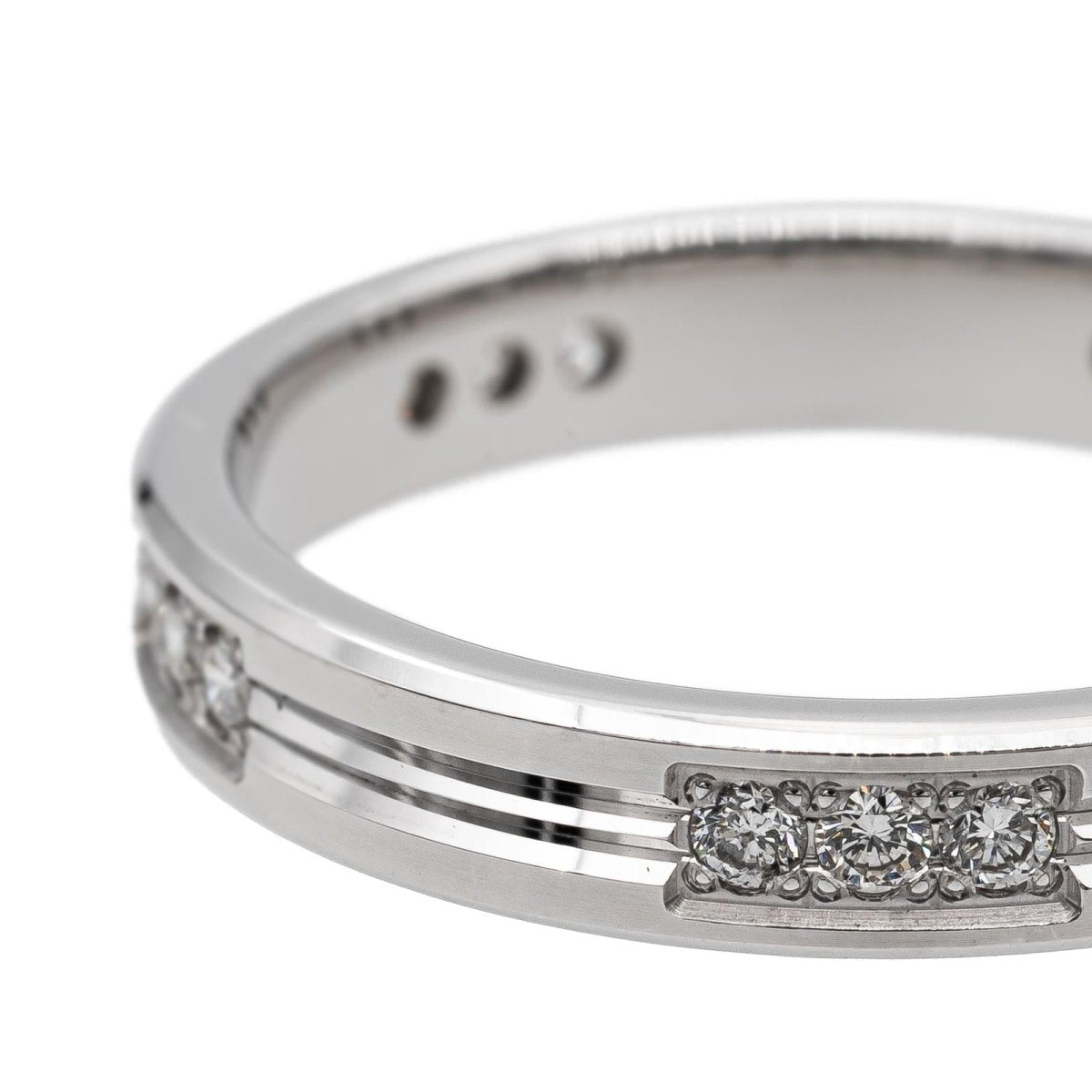 Bague alliance en or blanc 750 millièmes (18 carats). sertie de 15 diamants taille brillant. d'environ 0.02 ct chacun. poids total diamants: environ 0.30 ct. largeur sur le dessus: 0.34 cm. tour de doigt: 53. poids total: 3.58 g. poinçon tête d'aigle. excellent état