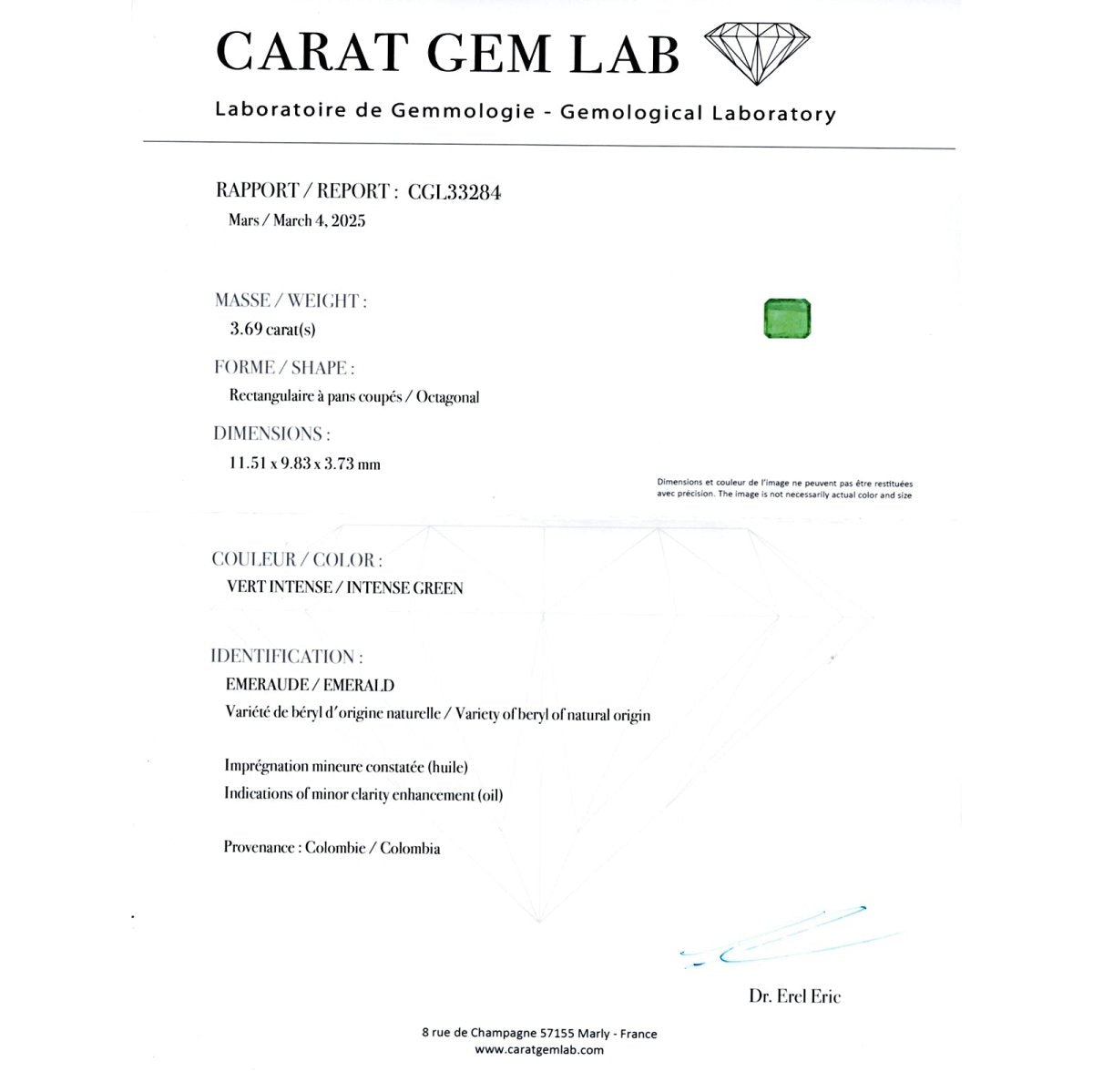 Bague Art Déco en platine sertie d'une émeraude rectangulaire à pans coupés et entourée de diamants taille ancienne.