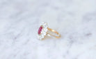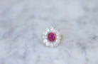 Bague marguerite, rubis Birman non chauffé 1.60 Cts, diamants