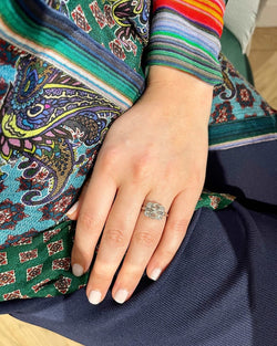 Bague Art Déco Platine et Diamants Taillés en Rose