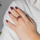 Bague Bandeau en or jaune, grenat, saphirs et diamants