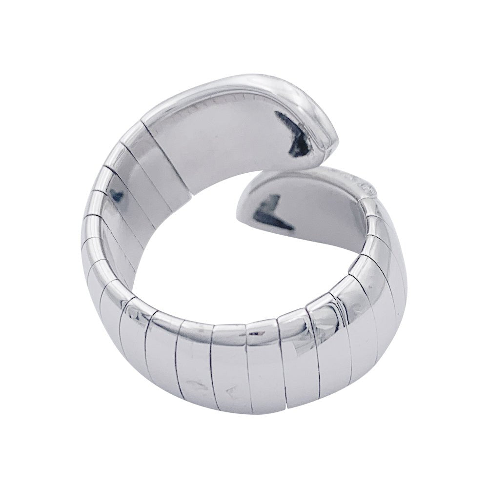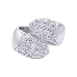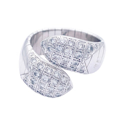 Une bague signée de la Maison Chaumet, “Plume pointes diamants croisées”, en or blanc 750/000 partiellement sertie de diamants taille brillant. Poids total estimé des diamants : environ 0,80 ct. Largeur : 16 mm Poids : 13,1 grammes Tour de doigt : 51