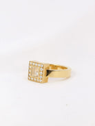 Bague Chopard Happy Diamonds carré en or 18k (750°/°°) et diamants. La bague sertie de diamants retient un petit diamant mobile d'excellente qualité. Signé Chopard.Tour de doigt 55Poids brut : 11,35 grammes