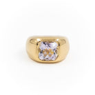Bague en or jaune 750 millièmes (18 carats). sertie d’une améthyste taille coussin carré. d’environ 6.10 cts. largeur sur le dessus: 1.60 cm. tour de doigt: 54. poids total: 28.31 g. poinçon tête d'aigle. excellent état