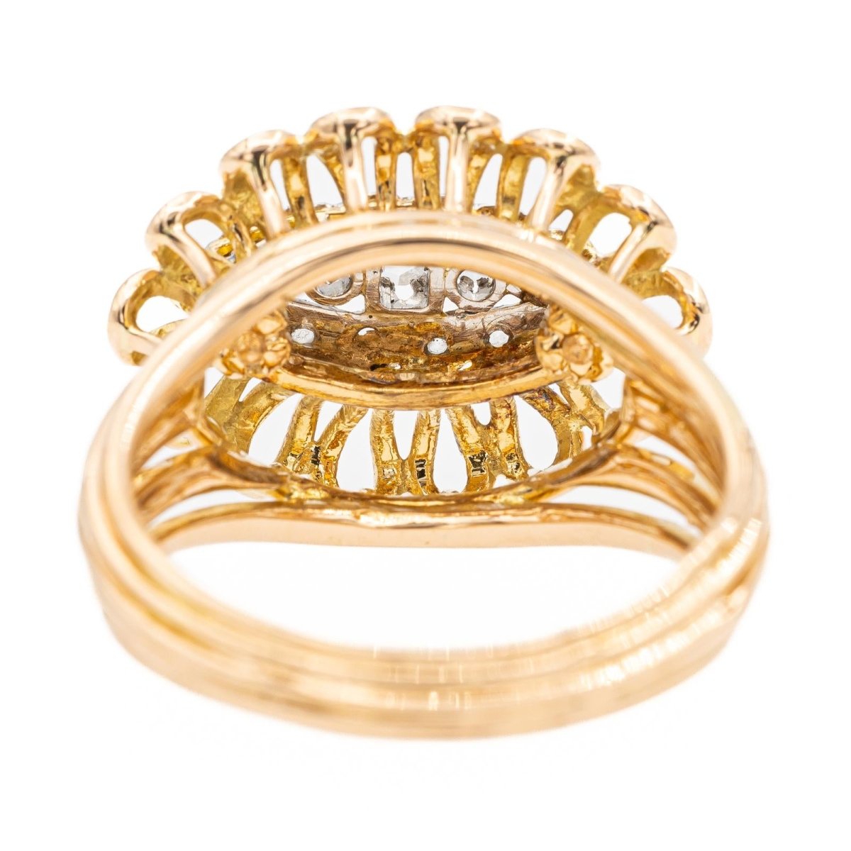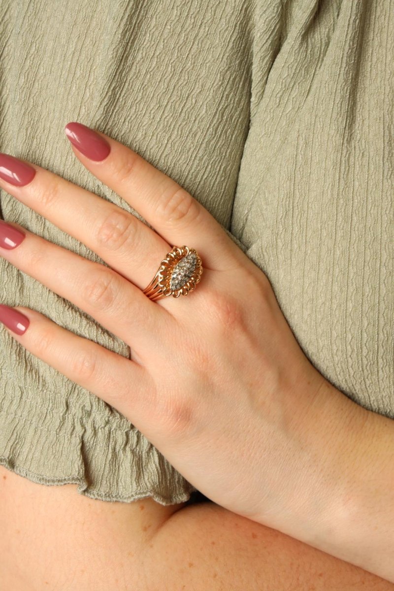 Bague Cocktail Napoléon III en or rose 750 millièmes (18 carats) et platine. sertie de 19 diamants taille rose. poids total diamants: environ 0.13 ct. largeur sur le dessus: 1.97 cm. tour de doigt: 56. poids total: 7.99 g. poinçon tête d'aigle et tête de chien. excellent état