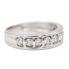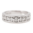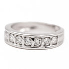 Demi alliance en or blanc 750 millièmes (18 carats). sertie de 9 diamants taille brillant. d'environ 0.05 ct chacun. poids total diamants: environ 0.45 ct. largeur sur le dessus: 0.47 cm. tour de doigt: 48. poids total: 3.71 g. poinçon tête d'aigle. excellent état