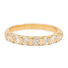 Demi alliance en or jaune 750 millièmes (18 carats). sertie de 7 diamants taille brillant. d'environ 0.09 ct chacun. poids total diamants: environ 0.63 ct. largeur sur le dessus: 0.27 cm. tour de doigt: 53. poids total: 2.86 g. poinçon tête d'aigle. excellent état