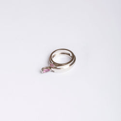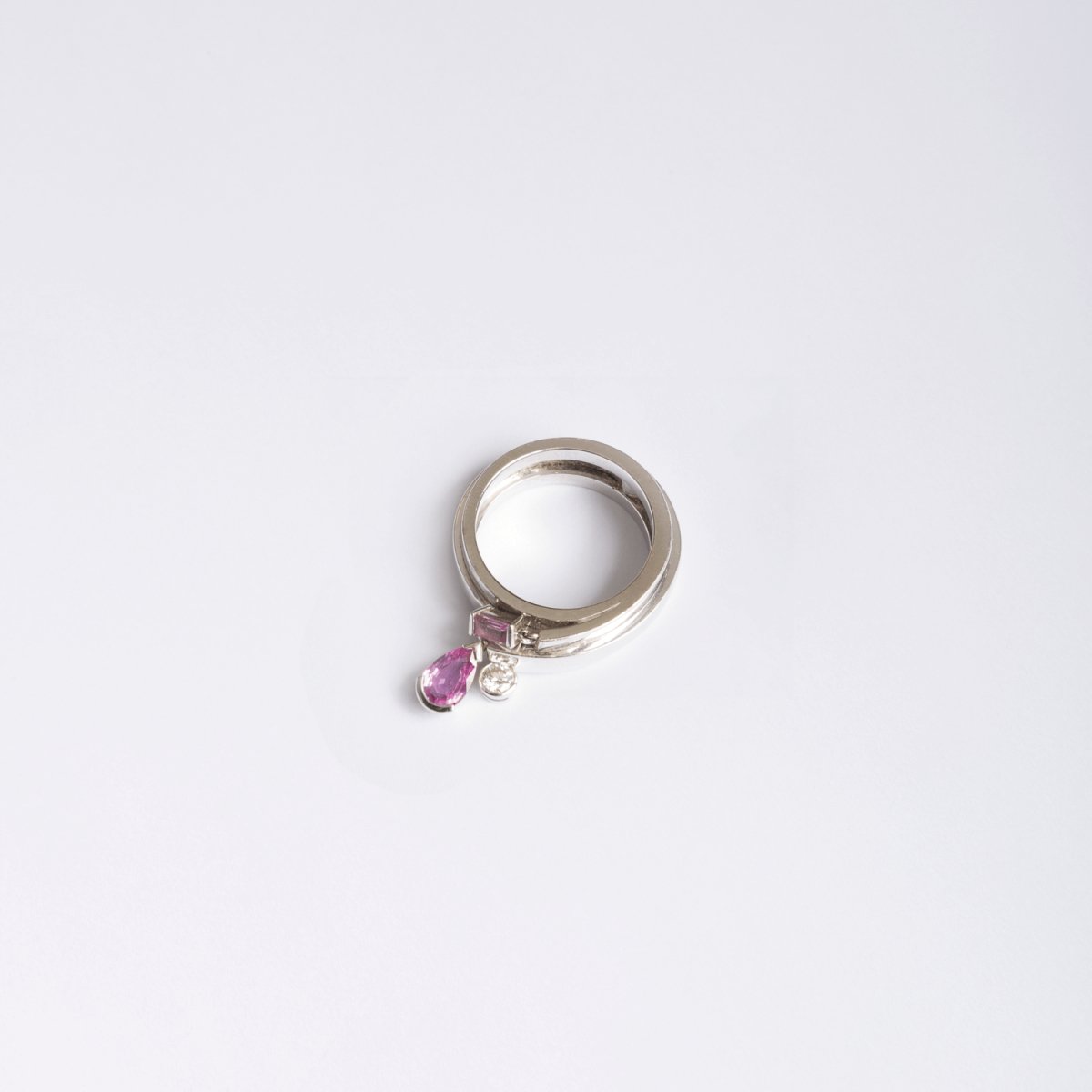Bague CHAUMET en or blanc et en diamant et saphir rose