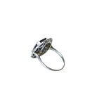 Bague Art Déco hexagonale en or blanc, saphir et diamants