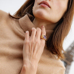 Bague FRED en or jaune 18 carats, sertie d'une améthyste ronde.