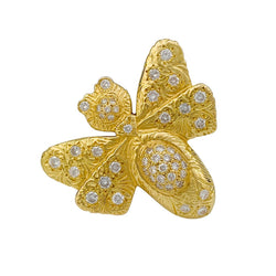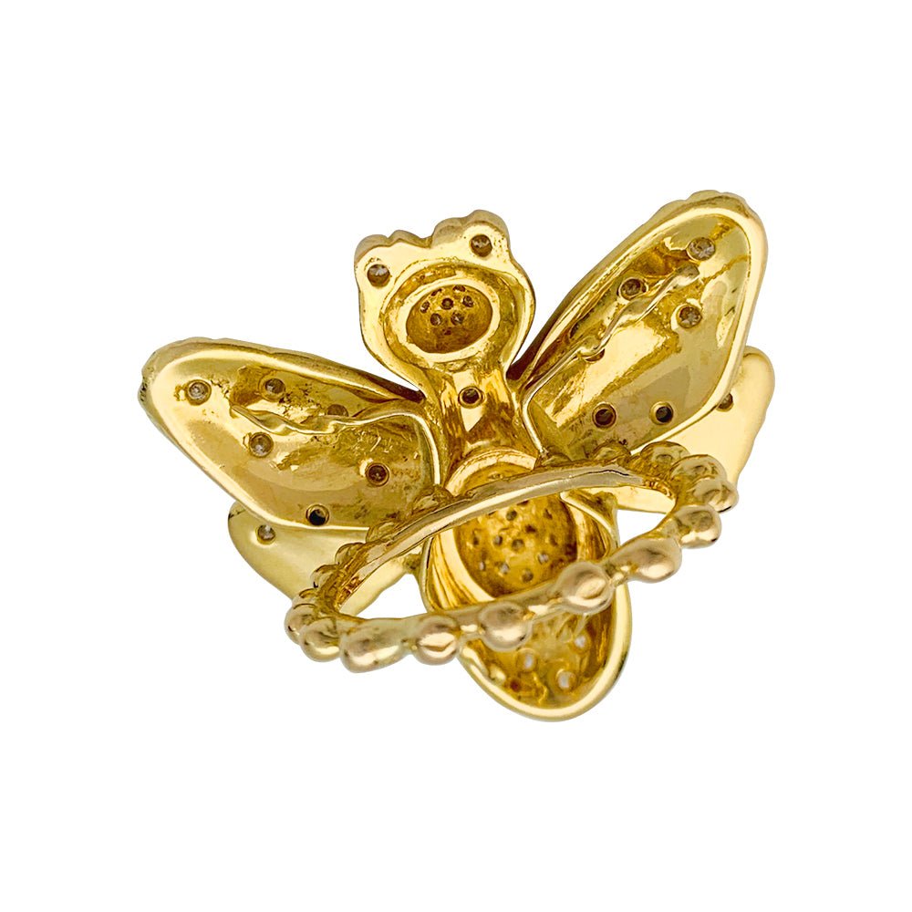 Une bague Garnazelle figurant un papillon en or jaune ciselé 750/000, rehaussé de diamants taille brillant. Longueur : 31 mm Largeur : 39 mm Hauteur : 7 mm Poids : 20 grammes Poids du diamant : environ 0,80 carat Tour de doigt : 52
