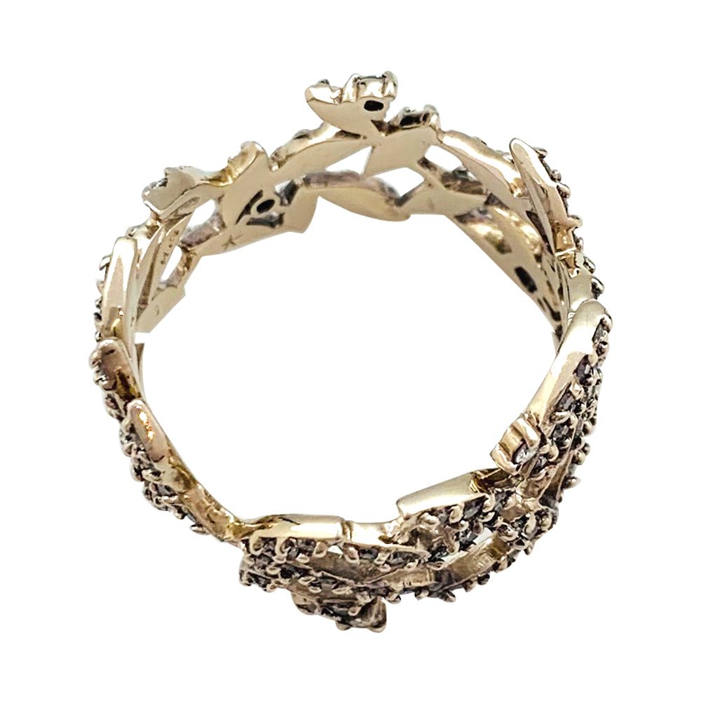 Une bague signée de la Maison H.Stern, collection “Nature”, en or naturel 750/000 au décor de feuillage ajouré serti de diamants taille brillant. Hauteur : 14 mm Poid : 4,5 grammes Poid du diamand : environ 0,80 carat Prix neuf : 4200 Tour de doigt : 51