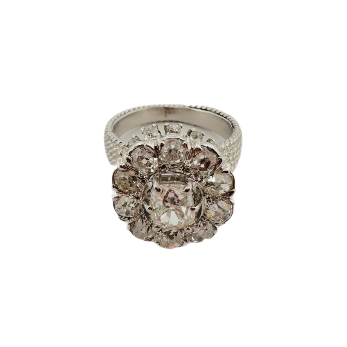 Bague Marguerite en platine, ornée de diamants taille ancienne.