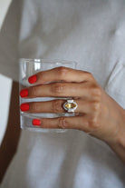 Bague Marquise en or blanc sertie d'une citrine et diamants